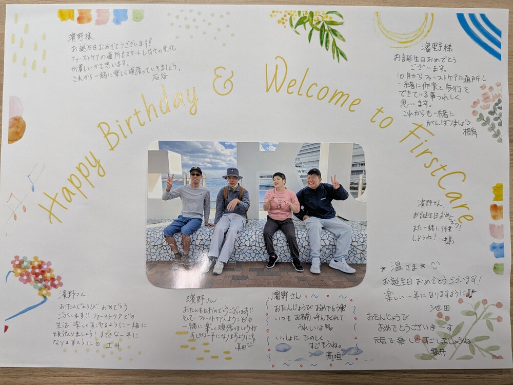 2025.11.17 お知らせ ご利用者様のお誕生月をお祝いしました。 お誕生日を迎えられたご利用者様に、スタッフから心を込めた写真付きのメッセージプレートをプレゼントしました。記念にみんなで写真を撮り、メッセージとともにお渡しすると、とても嬉しそうな笑顔を見せてくださいました。これからも、ひとりひとりの大切な日を一緒に楽しめるよう、スタッフ一同で心を込めた支援を続けていきます。施設管理者 根岸貢 PDFはこちら
