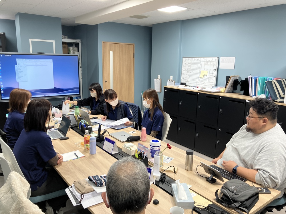 外部講師の先生にもご参加いただき、ご利用者様の日中活動の様子を見ながら意見を出し合うディスカッション形式で進めました。